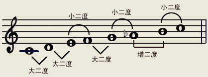 自然小调与自然大调一样,同样在一个八度之内的每一个音都可以构成自然小调。