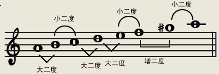 和声小调:把自然小调的Ⅶ级音升高半音,叫做“和声小调”它的音程结构是这样的。
