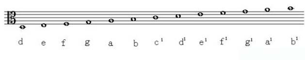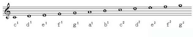 在五线谱中,记录音的高低是靠音符的附头在五条线和四个间的位置来决定的。在不同的谱表上线间位置是不相同的。